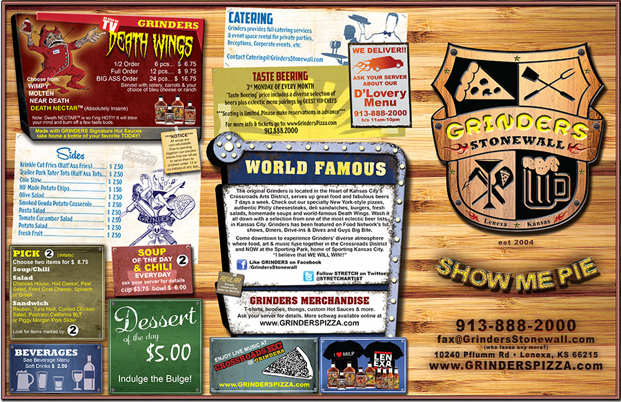 Grinders Stonewall is the third restaurant in the Grinders Family. I help them with all of their graphic needs. Soon to come: t-shirts, bumper stickers, buttons, ads, and much much more.